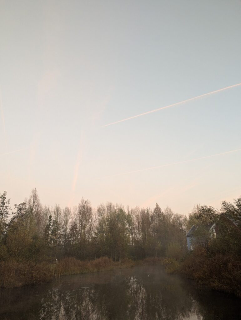 Prachtig hoe er stoom van het water opstijgt en álle kleuren van de herfst zo mooi weerspiegelen in de lucht én in het water.