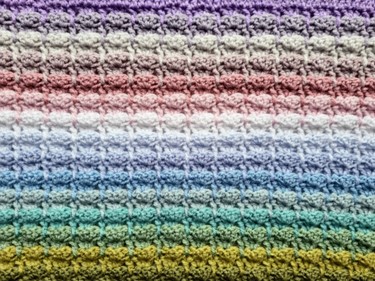 Zodra je eerste paar rijen gehaakt hebt, ben ik ervan overtuigd dat je langs deze mooie rijen glijdt en van elke minuut zult genieten. Het patroon is gemakkelijk te leren met heel weinig tellen. En zodra het beginpatroon is opgezet, is elke streep hetzelfde. Het enige wat je hoeft te doen is elke andere rij van kleur veranderen en genieten van het haakritme.