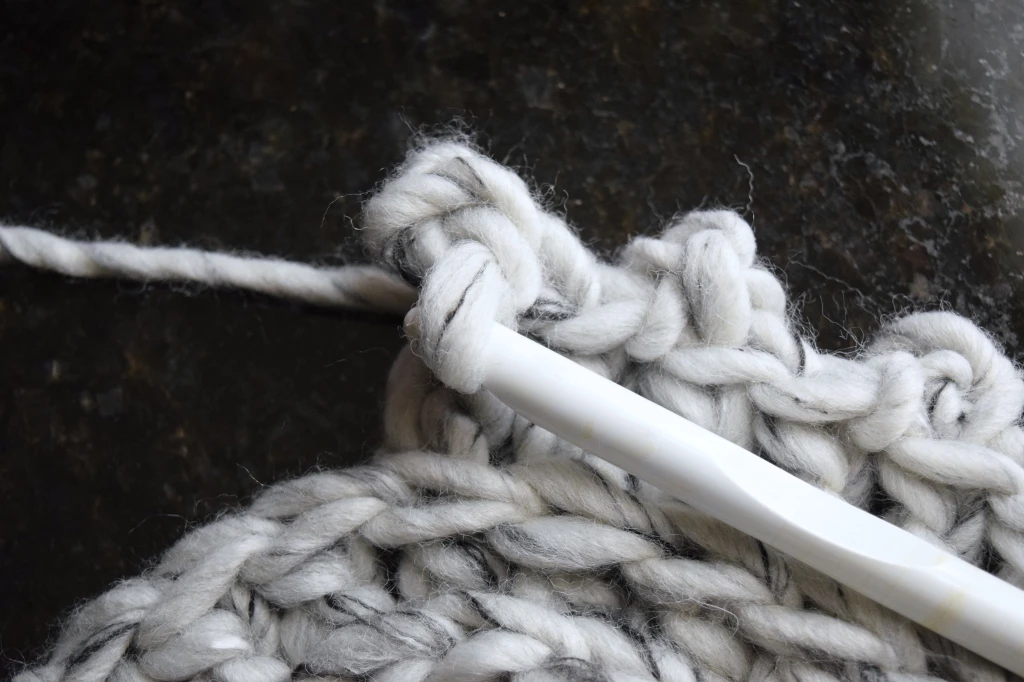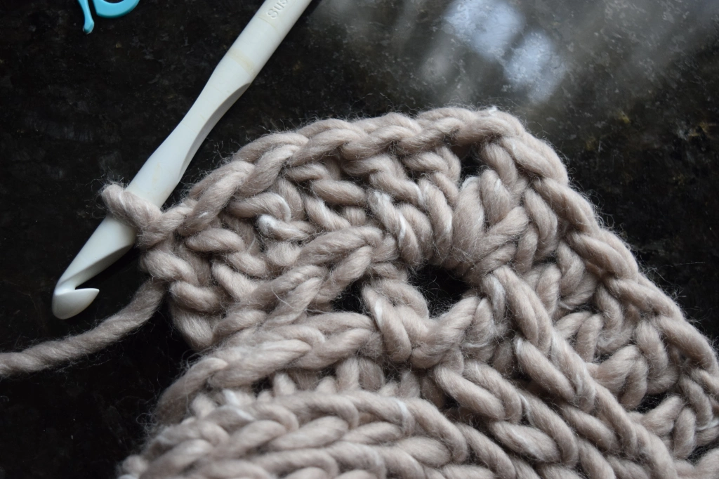 Deze garens zijn niet alleen verslavend om te aaien – een flinke stapel super bulky gewicht garen kan bovendien heel snel in een mooi haakproject veranderd worden! Ik ben dol op mijn 11,5 mm haaknaald: een groot, vreemd, plastic ding die ik ooit bij een kringloop vond. We hebben al zoveel projecten gemaakt samen, ik en die haaknaald, inclusief het lekkere dikke winter accessoire haakpatroon dat ik vandaag met jullie wil delen!