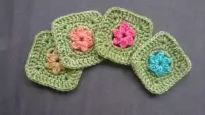 Deze granny square heet ‘Star’, of ‘Ster’. Het is de eerste granny van week 3 en de vierde granny van de Bloementuin Deken. Het is een kleine en vrij eenvoudige granny van 10 bij 10 centimeter als je hem met het voorgeschreven materiaal maakt. De granny bestaat uit 4 toeren en slechts 2 kleuren. Je maakt in totaal vier van deze vierkanten, in verschillende kleurencombinaties.