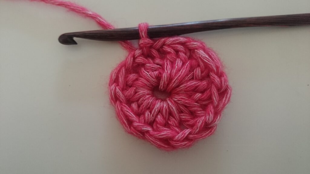 Begin2stokjescluster: 2 lossen, keer om, stokje in dezelfde steek.