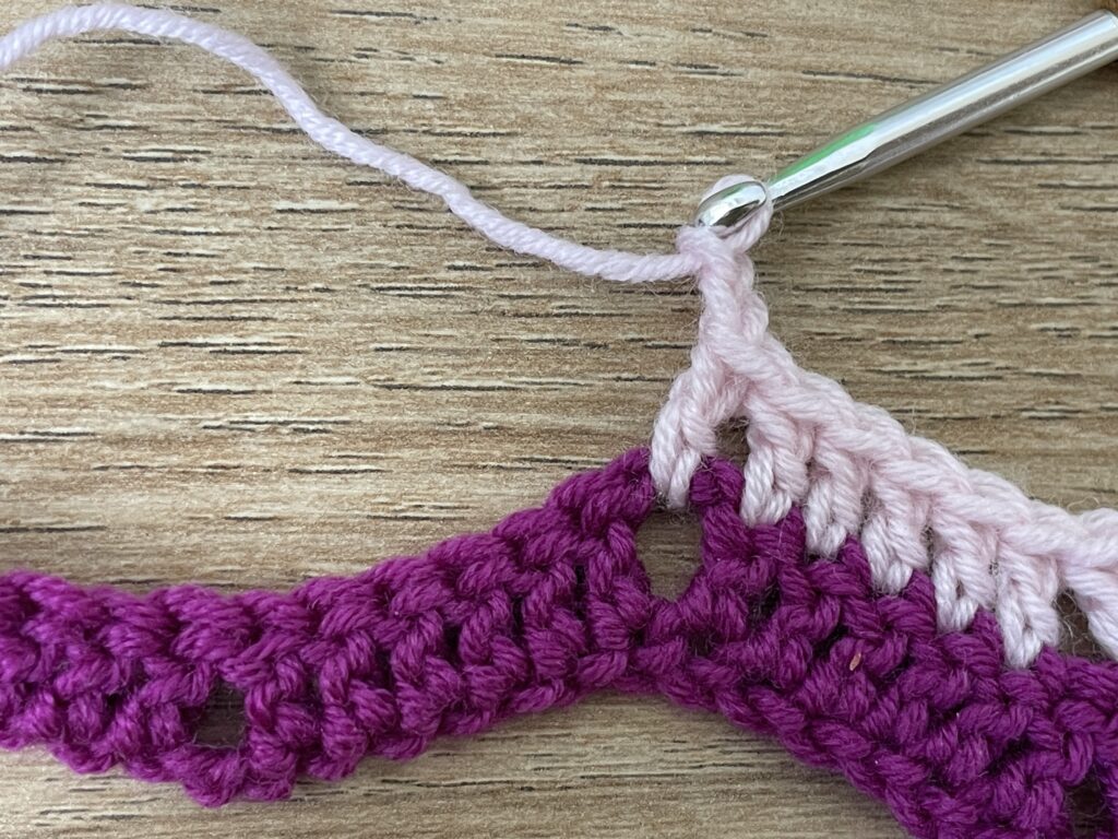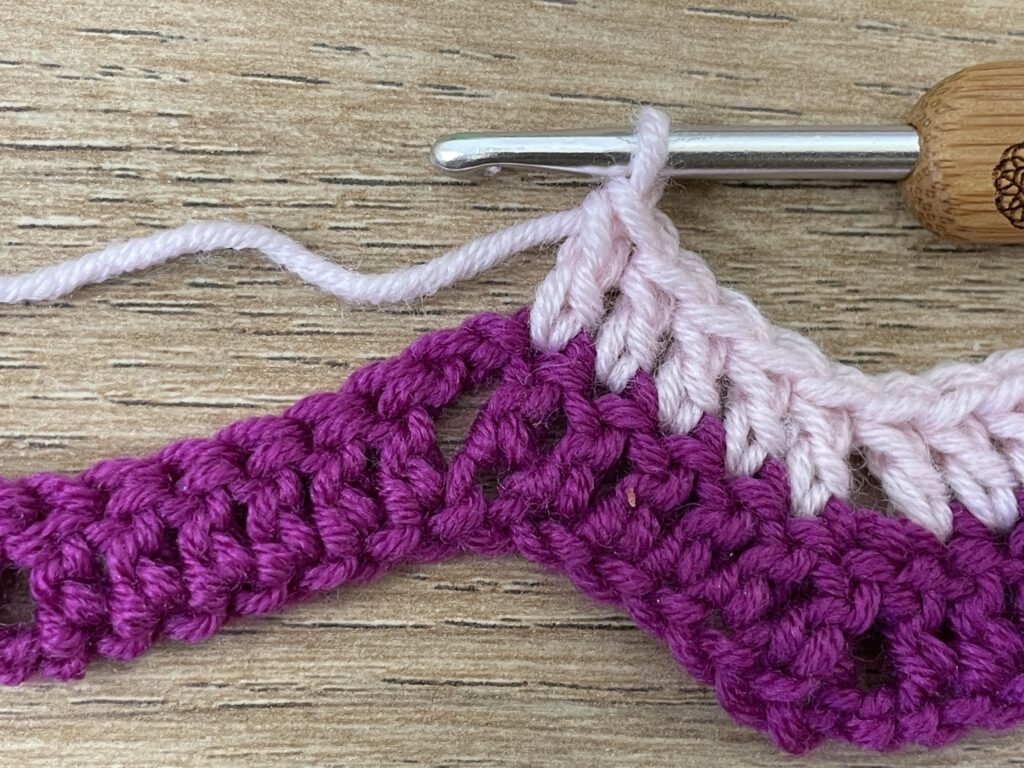 Voor de Chevronsteek kun je zelf bepalen welke steek je toepast, dus met vasten, halfstokjes, stokjes of misschien wel dubbelstokjes. In deze foto-tutorial laat ik het je zien met stokjes.