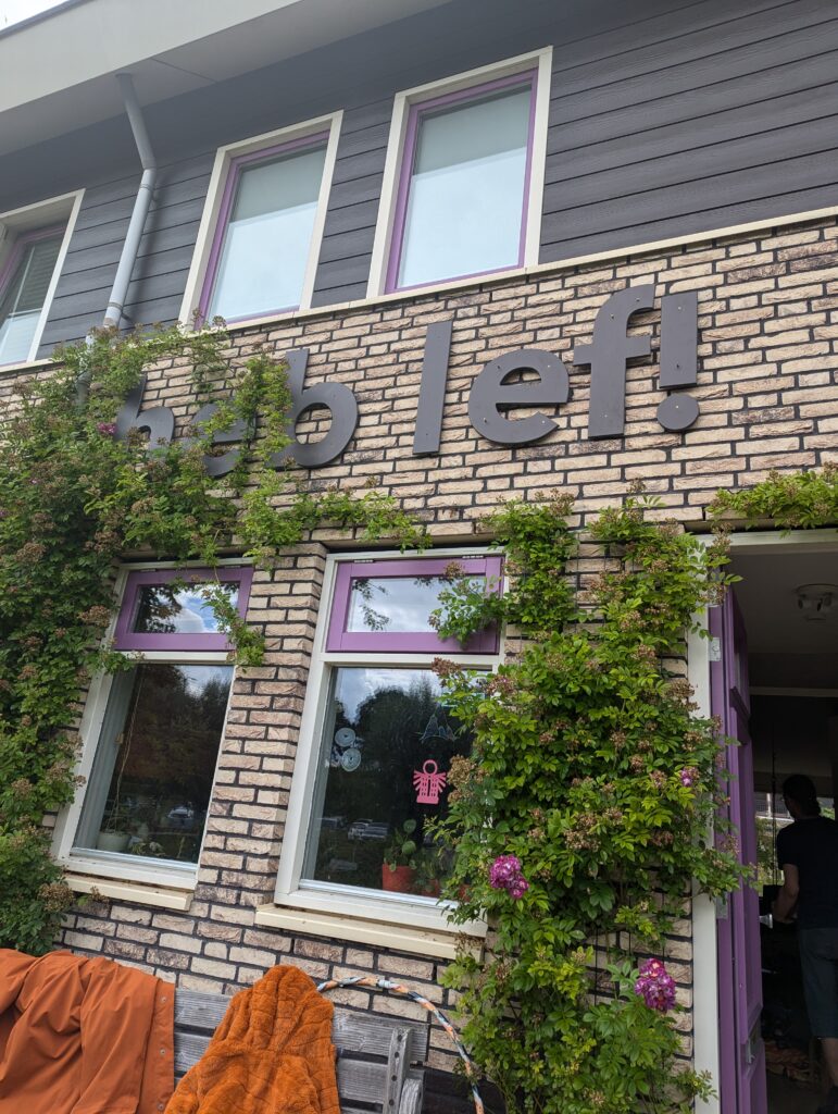 Bij thuiskomst wachtte een verrassing. Normaal staat er “heb lief” op onze gevel.