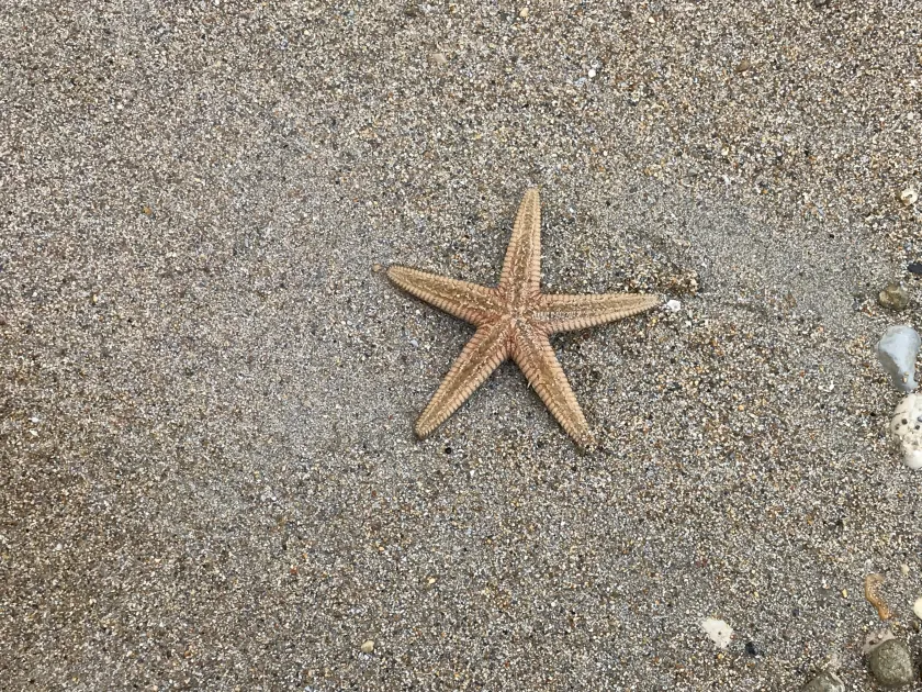 Zeesterren zijn hele mooie en fascinerende dieren en de meeste hebben 5 armen. Daarom past mijn ontwerp ook zo mooi in een vijfhoek! Hier is een zeester die we op het strand van Korfoe vonden vorig jaar, helaas aangespoeld…