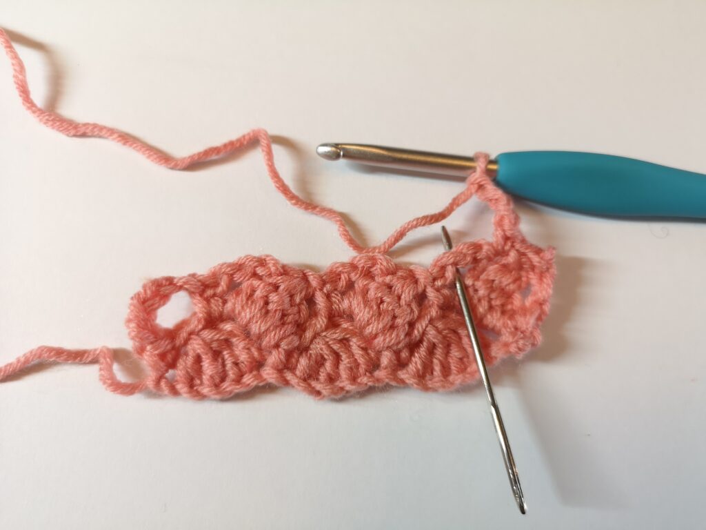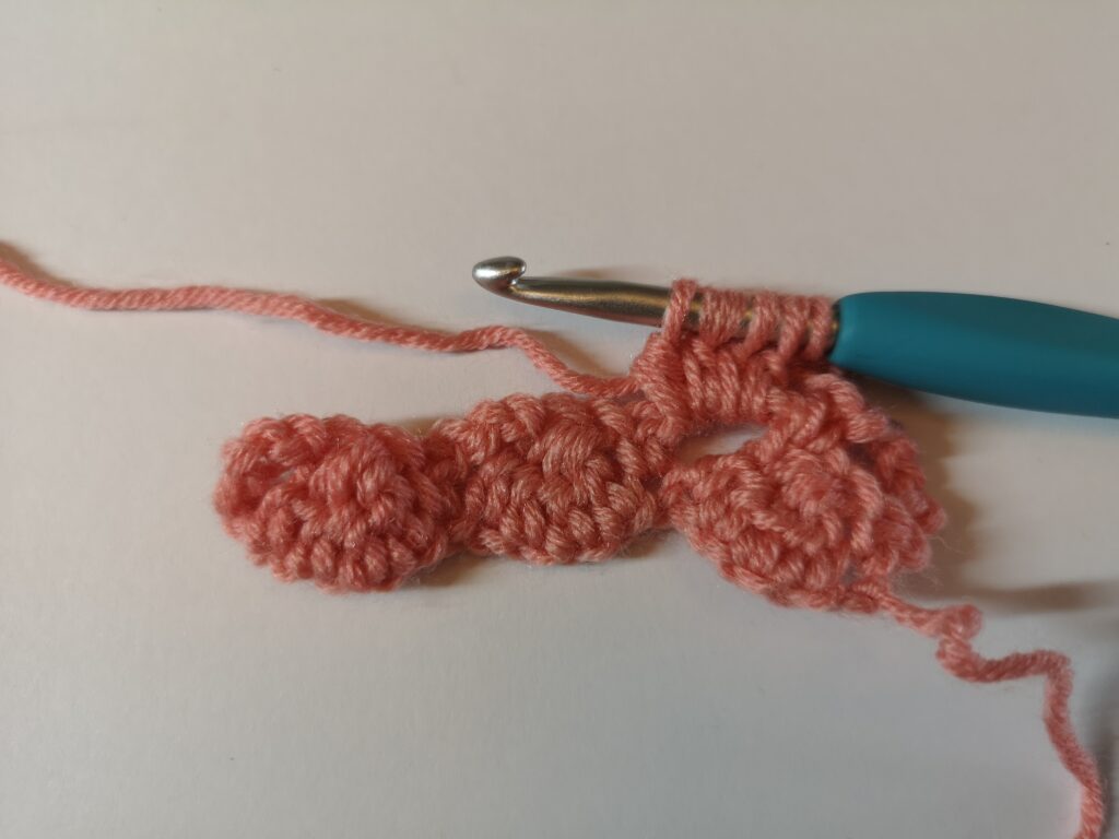 Nu ga je weer 4samengehaaktestokjes maken over de volgende vier lossen. Daarvoor doe je: