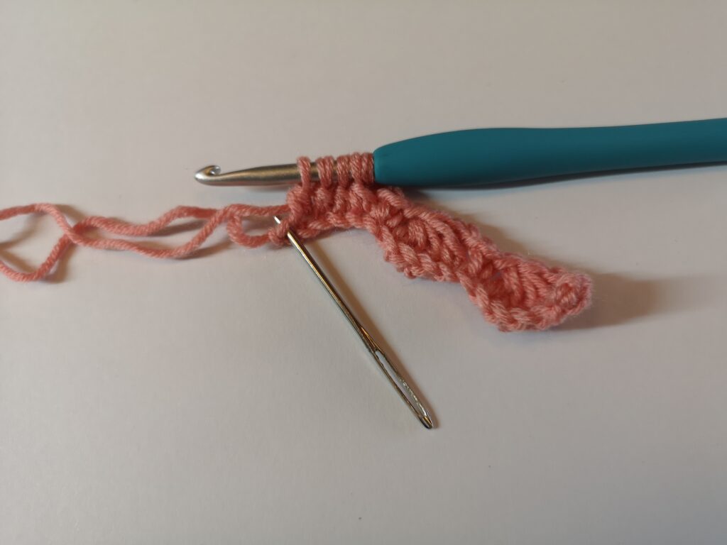 Haak een losse. Haak een vaste in de volgende losse (zie stopnaald in foto boven).