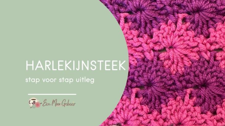 In het Engels heet dit de Wheel stitch of Harlequin stitch. Let op! Het is niet de catherine’s wheel stitch. Bij deze steek haak je steeds 3 vasten tussen de stokjes, dat is bij de Harlekijnsteek niet.