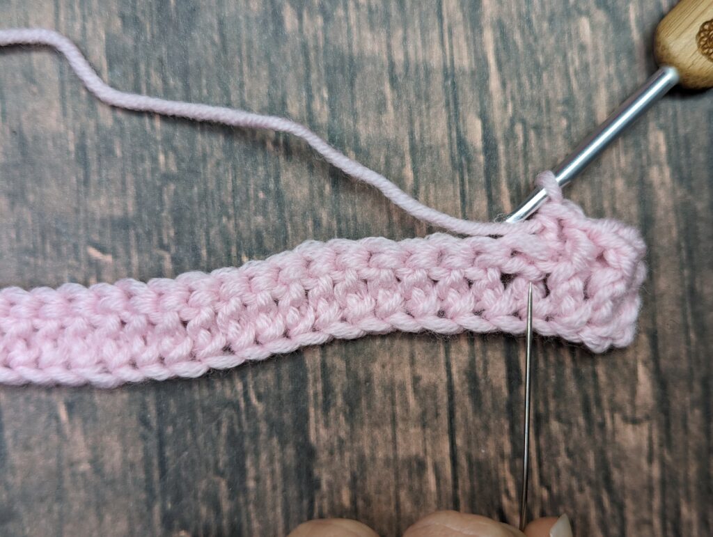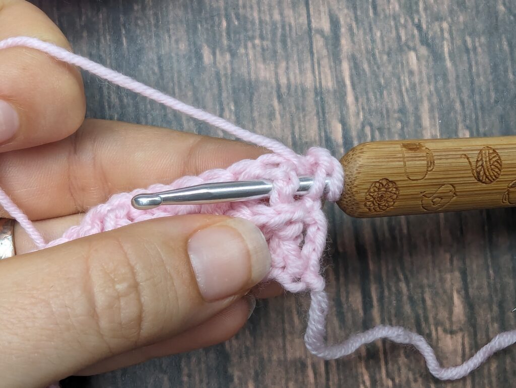 Stap 4: herhaal tot einde toer, tot er nog één steek over is, haak daar een halfstokje in.