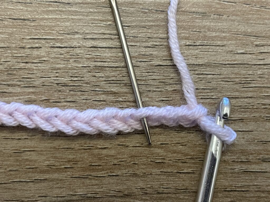 De touwsteek wordt ook wel de V steek genoemd. Als je goed kijkt, zie je dat je allemaal kleine v’tjes aan het haken bent.
